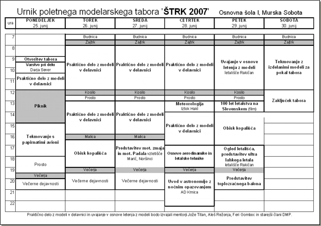 Vsak večer zapisujemo svoje doživljaje v dnevnik. Oglejte si naš urnik: